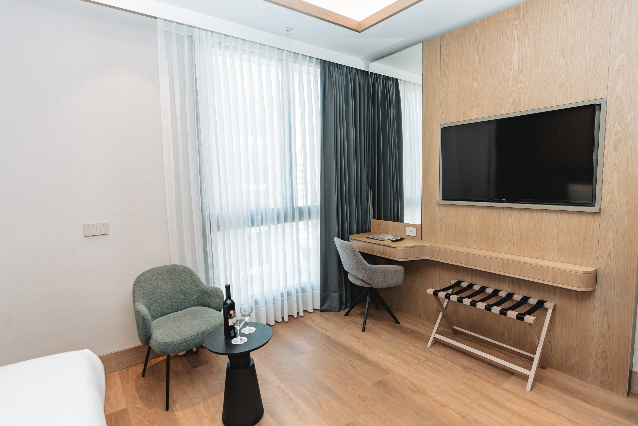 Step into an oasis of comfort and tranquility for a true escape from the hustle and bustle. Designed with attention to detail and a nod to luxury, our comfort rooms with spacious bathrooms offer a home-away-from-home ambiance. Surrounded by stunning views of the Mediterranean Sea, and the city’s distinctive urban skyline, this escape is the optimal choice to recharge your battery after a busy day in the city.
